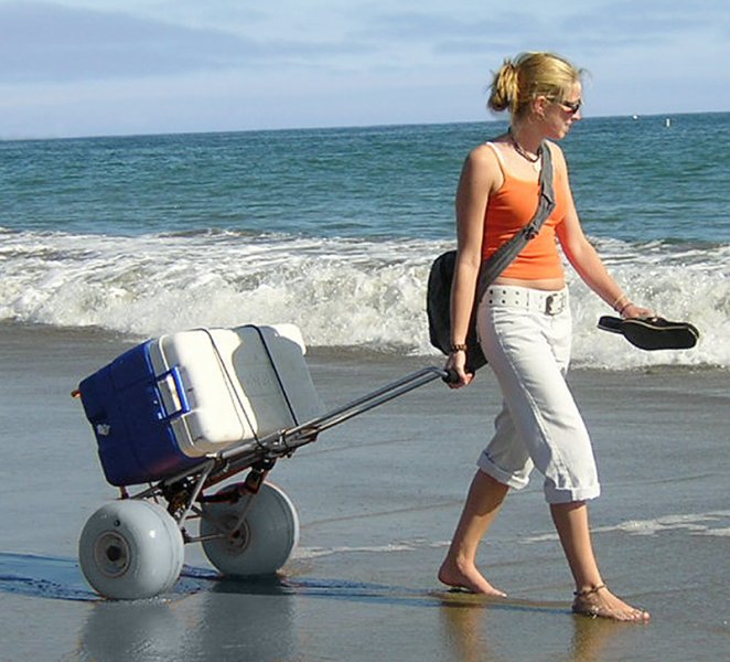 The Wheeleez™ Beach Cart-Folding is the perfect beach cart for carrying any size cooler for a picnic at the beach or park. This beach cart is also the ideal gardening cart, fishing cart, or utility cart. Use the Beach Cart-Folding to move the sensitive camera or sound equipment. It folds easily for compact storage and fits in small spaces.