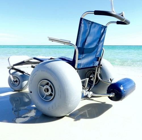 Dip your toes in the sand, feel the spray of the surf with the EZ Roller. Equipped with Wheeleez™ polyurethane balloon wheels, the EZ Roller virtually floats across the sand, to the water. The highest quality 316L marine grade stainless steel frame and front swivel caster allow for many years of trouble-free enjoyment in the sun, sand, and surf. Access all terrains including sand, gravel, rock, grass, mud and any uneven surfaces with EZ Roller and Wheeleez™ wheels.