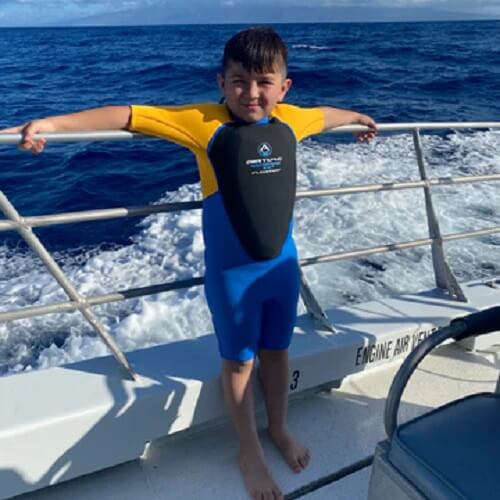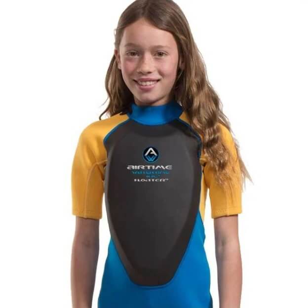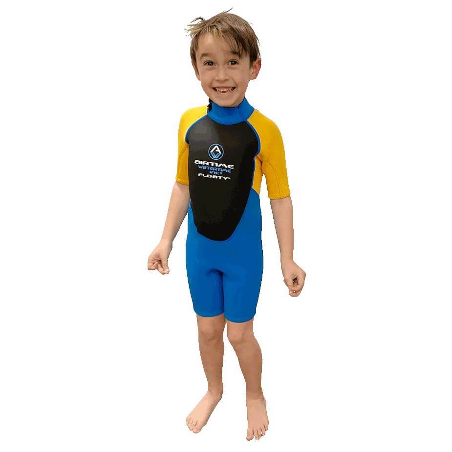 Airtime Watertime flotation suit, Floater® or Floaty® is a 2mm neoprene spring wetsuit with an extra long zipper for easy entry and exit. The chest area has been fitted with a specially designed panel of high-quality foam for support and flotation.