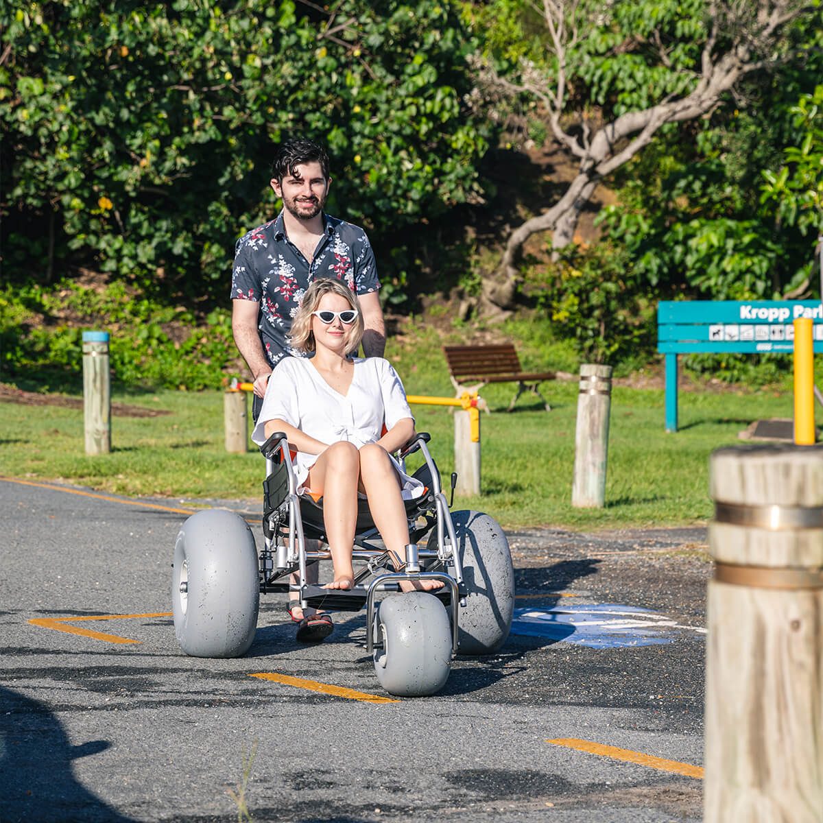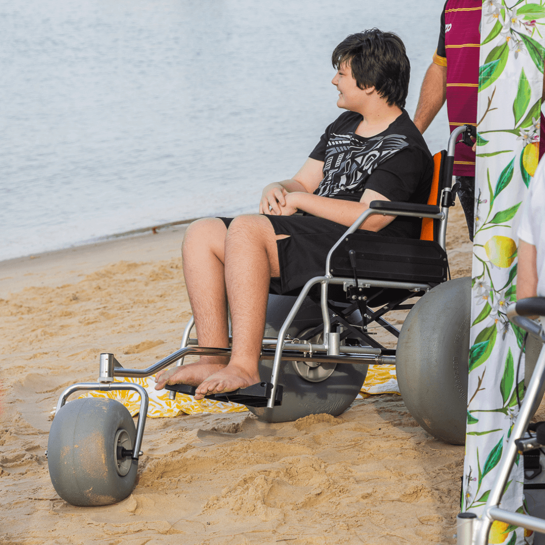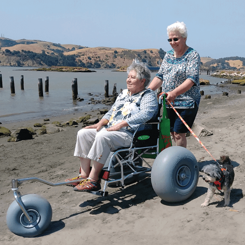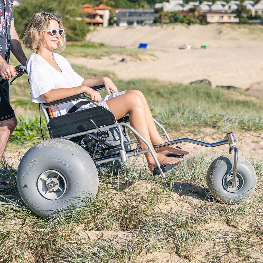 Wheeleez™ Conversion Kits with front caster permit affordable quick, hassle-free conversion of most folding, manual wheelchairs into All-Terrain/Beach Wheelchairs. Each Kit includes: – (3) PU Balloon Wheels, complete front & rear chassis assemblies with necessary mounting hardware and detailed assembly instructions. Front and Rear Kits are perfect for economical conversions!